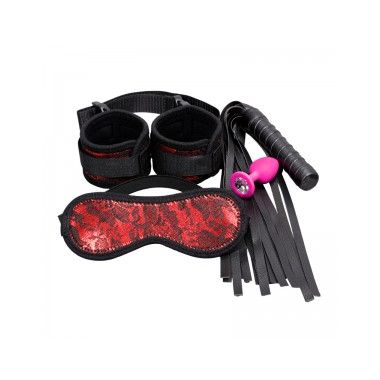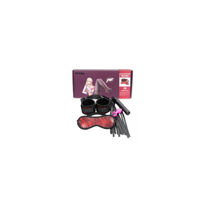 【SM】房事调教手铐皮鞭肛塞眼罩另类情趣用品四件套(11A031P4)美加奴